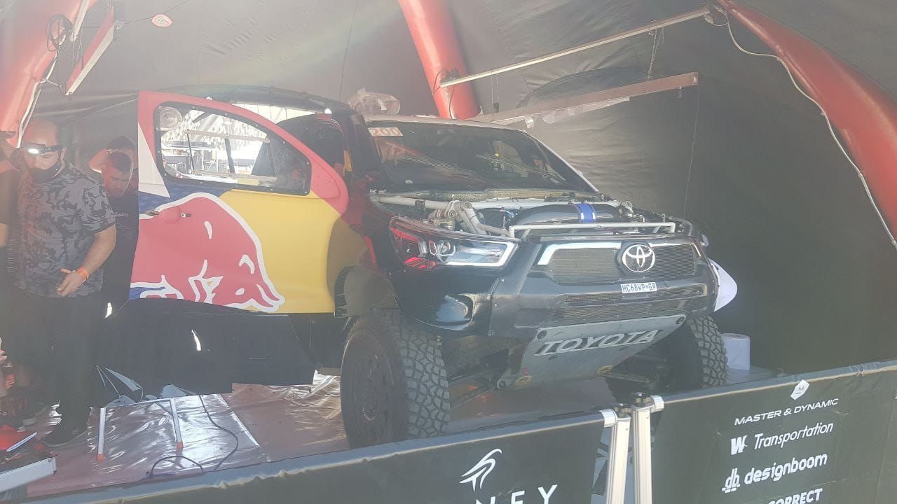 La Hilux que le cedió el qatarí, fue con la que ganó la edición 2019 y en la imagen que compartieron en las redes sociales se puede que todavía tiene el ploteo de la bebida energizante que lo patrocina. "Es nuestro amigo. Hace dos días se le quemó el coche y les ofrecí el mío para poder salir. Es un coche muy especial para mí, es el ganador de 2019, pero yo creo que hay que darles a todos los participantes la opción de competir", dijo Nasser al respecto. Un grande arriba, pero más grande abajo del auto.