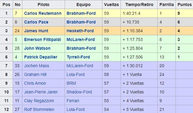 En la última carrera de 1974, que ganó el argentino Carlos Reutemann con Brabham-Ford, el brasileño Emerson Fittipaldi (Mac Laren-Ford) superó por apenas tres puntos (55 a 52) al suizo Clay Regazzoni (Ferrari) y se coronó campeón de una temporada que, igual que la del 2021, se definirá en la última cita del calendario.
