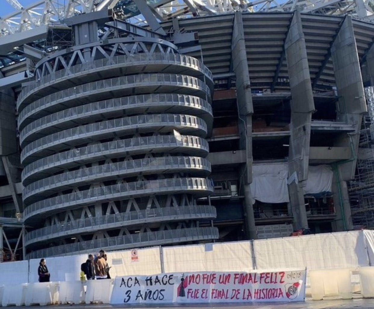 "Acá hace 3 años no fue un final feliz, fue el final de la historia", es la frase que aparece en el trapo que decora uno de los ingresos la reconocida cancha situada en la capital de España. Pero, además, los héroes de aquella inolvidable tarde utilizaron las redes sociales para recordar el momento y, de paso, chicanear a su eterno rival.