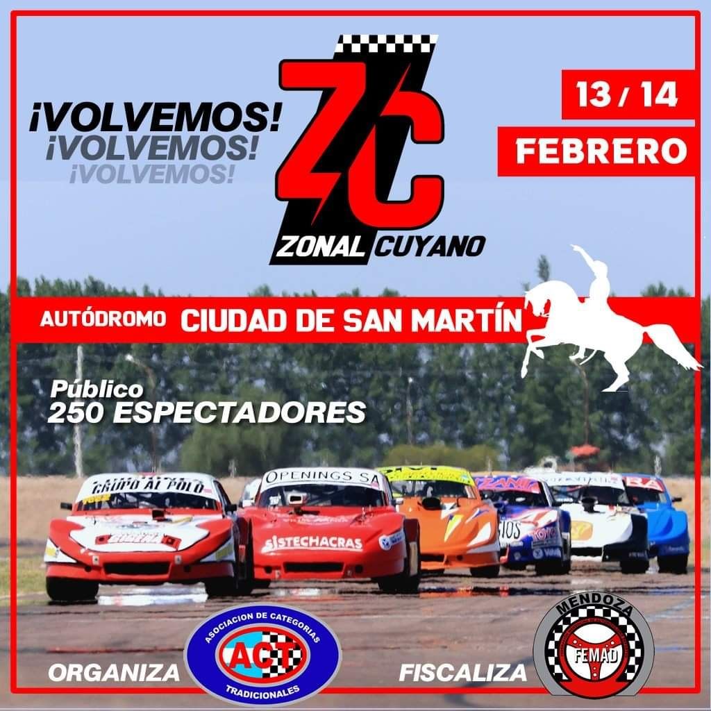 El automovilismo de Mendoza vuelve a encender sus motores. El Zonal Cuyano sale a pista oficialmente el próximo fin de semana en el autódromo "Ciudad de San Martín" bajo la organización de la Asociación Categorías Tradicionales y fiscalizada por FEMAD, Federación Mendocina de Automovilismo Deportivo.