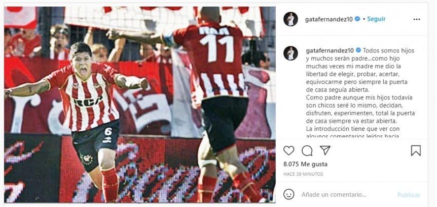 “Todos somos hijos y muchos serán padres...como hijo muchas veces mi madre me dio la libertad de elegir, probar, acertar, equivocarme, pero siempre la puerta de casa seguía abierta. Como padre aunque mis hijos todavía son chicos seré lo mismo, decidan, disfruten, experimenten, total la puerta de casa siempre va estar abierta”, comenzó el ex volante de 37 años.