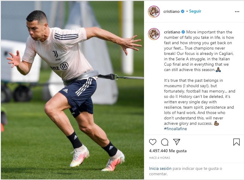 "Más importante que el número de caídas que sufras en la vida es saber a qué velocidad y con qué fuerza te vas a levantar", escribió en inglés en su cuenta de Instagram, donde con 270 millones de seguidores es el deportista más seguido en dicha red social.
