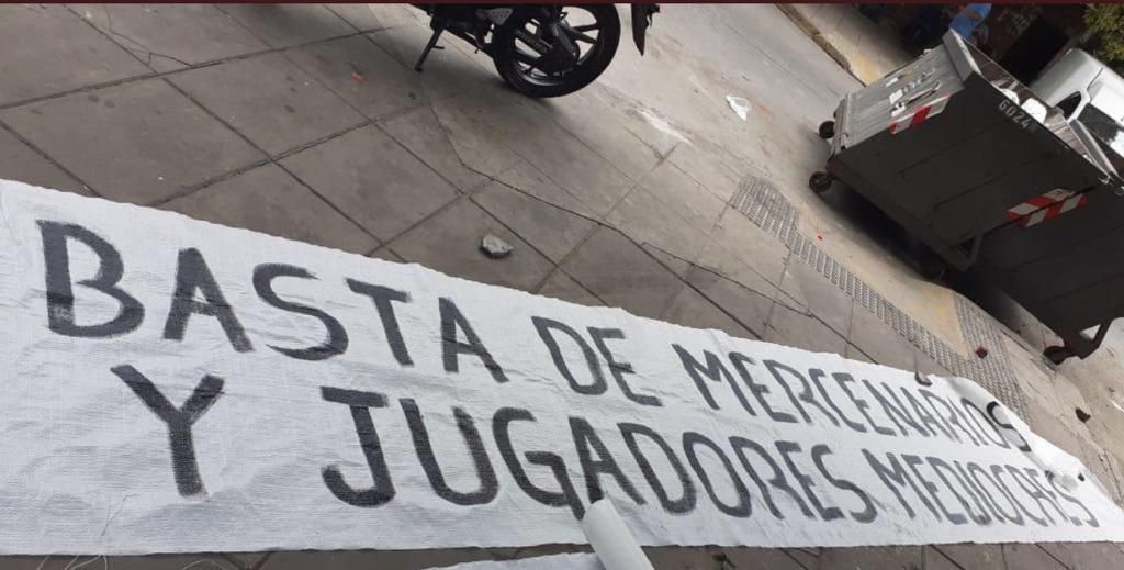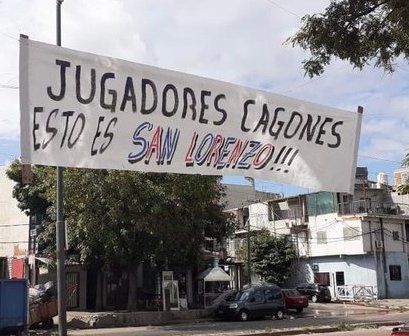 Una de las frases que se pudo leer en contra de los jugadores fue: "Jugadores cagones, esto es San Lorenzo". "Basta de mercenarios y jugadores mediocres", se pudo leer también.