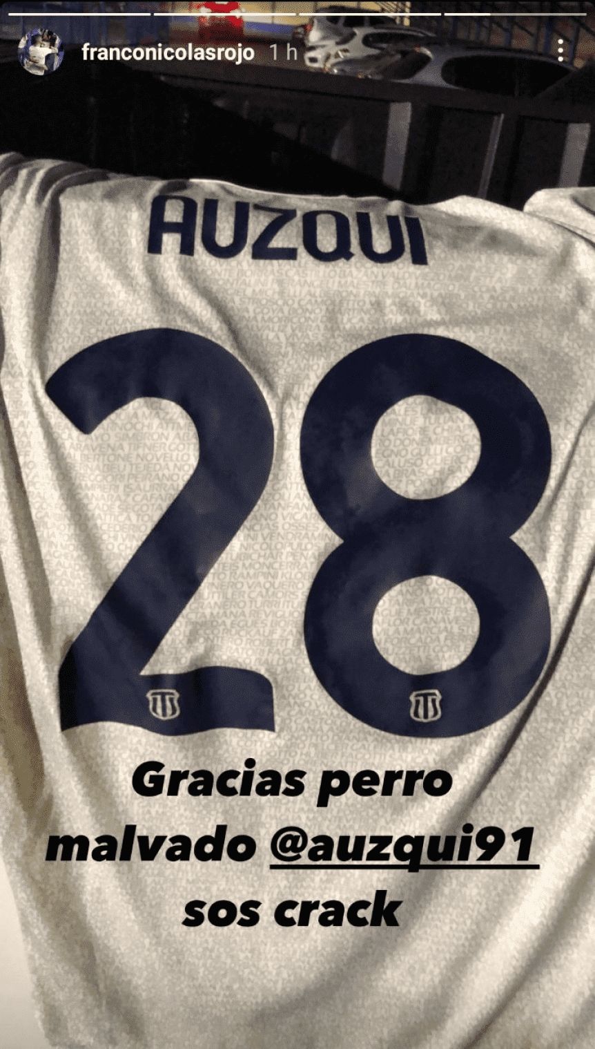 Es que después de la dura derrota que sufrió Boca ante Talleres en la Bombonera, donde perdió el invicto en el torneo y mostró una pobre imagen, sin patear ni una sola vez al arco, Franco Rojo compartió en sus historias de Instagram el regalo que le hizo Carlos Auzqui, autor del primer gol de los cordobeses.