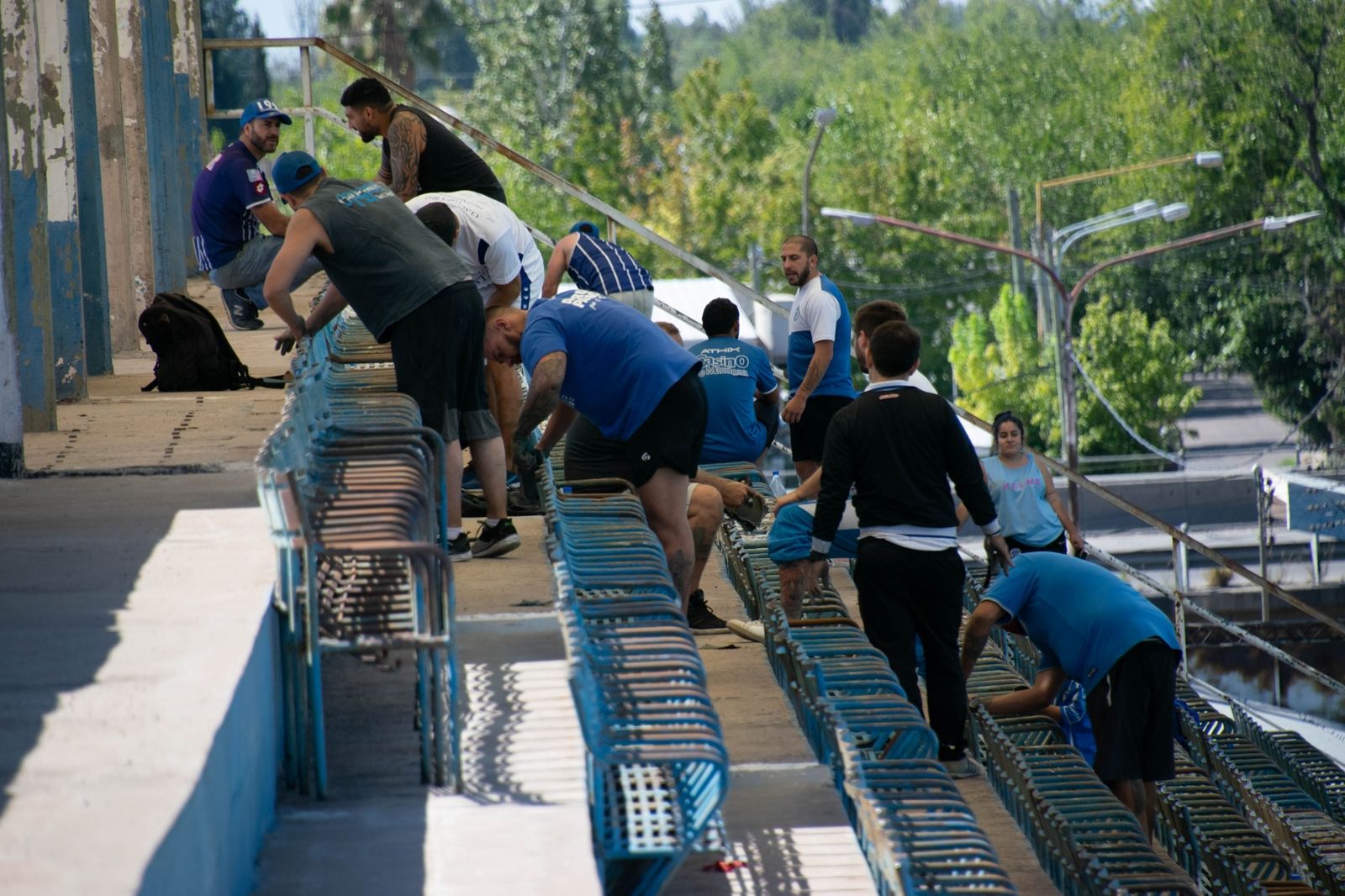 Limpieza y remoción de óxido y restos de pintura de las butacas de la platea techada, que serán restauradas a nuevo; pintura del muro de contención interno del campo de juego; un retrato gigante del Loco Julio en el tanque de la esquina noreste; el dibujo del escudo en el corazón de la popular que da al Cacique Guaymallén son algunas de las tareas que han hecho los propios socios e hinchas en estos días, según informó la Subcomisión de Infraestructura y Eventos del club, que continúa trabajando en el embellecimiento general del estadio y las zonas de ingreso de los equipos.