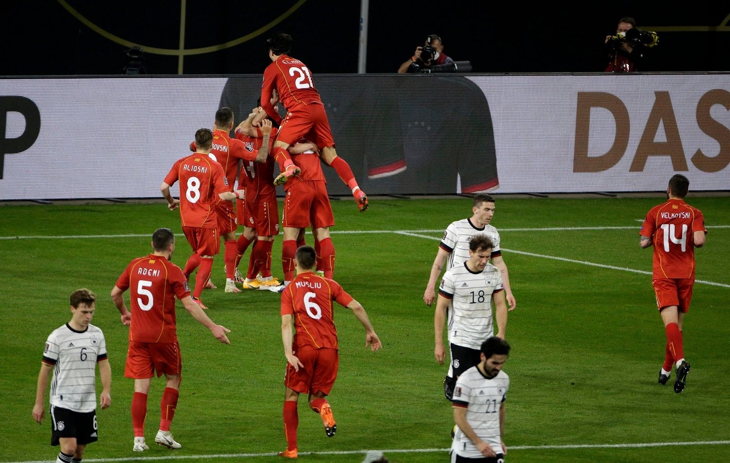 Después, en el 80, Timo Werner tuvo el segundo en sus pies cuando Gundogan lo dejó solo ante el portero pero falló en el rema. Los contragolpes macedonios seguían siendo peligrosos y en uno de ellos llegó el segundo, en el 85, por intermedio de Elmas, a centro de Ademi, para consumar un batacazo que repercute en el mundo del fútbol.