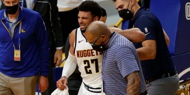 El base cayó al suelo de dolor, agarrándose la rodilla izquierda y golpeando la cancha con una mano después de intentar superar a dos defensores de los Warriors en una penetración. El entrenador de los Nuggets, Michael Malone, salió a la cancha a interesarse por el estado de Murray e inmediatamente gritó pidiendo más atención médica.