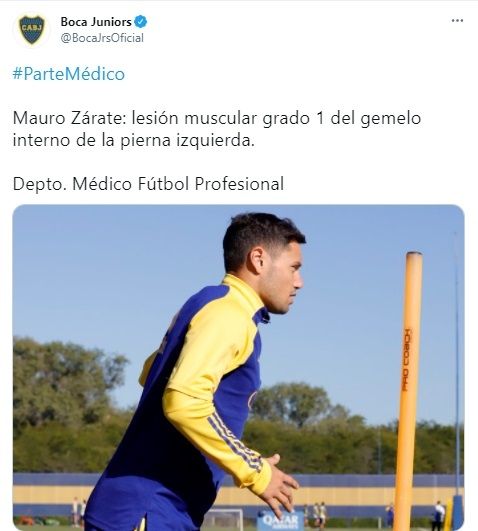 La otra tiene como protagonista a Mauro Zárate que, en las últimas semanas, había recuperado algo de terreno y había logrado algo de continuidad luego de haberse visto bastante relegado dentro de la consideración del entrenador. Por intermedio de su cuenta oficial de Twitter, comunicó que el delantero padece una "lesión muscular grado 1 del gemelo de la pierna izquierda".
