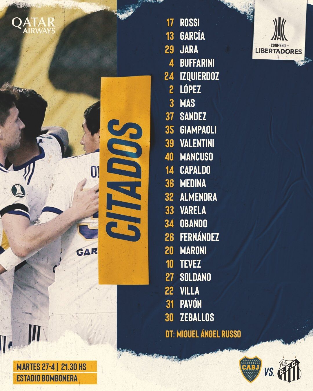 Lo cierto es que Miguel Ángel Russo piensa una sorpresa en el 11 inicial. Debido a la expulsión que tiene Frank Fabra por CONMEBOL y la posible lesión de Emmanuel Más (tiene una molestia), el entrenador tendrá que elegir entre el pibe Agustín Sández y Julio Buffarini. Sí, el lateral derecho podría ser el lateral izquierdo y Nicolás Capaldo volvería a ser el "4".
