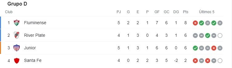 De igual manera, River sigue dependiendo de sí mismo, pero la semana que viene jugará contra un Flu que no estará clasificado y que hasta podría quedar eliminado. Lo positivo es que los brasileños juegan el sábado la vuelta de la final del Carioca contra Flamengo y podrían llegar desgastados, aunque la situación que vive el club de Núñez excede todo.