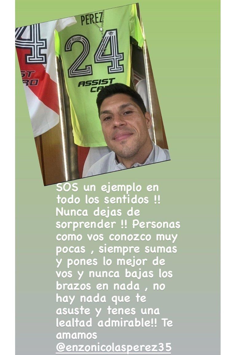El mensaje de su esposa y la foto familiar que muestra los souvenirs que se llevó Enzo Pérez de la victoria de River
