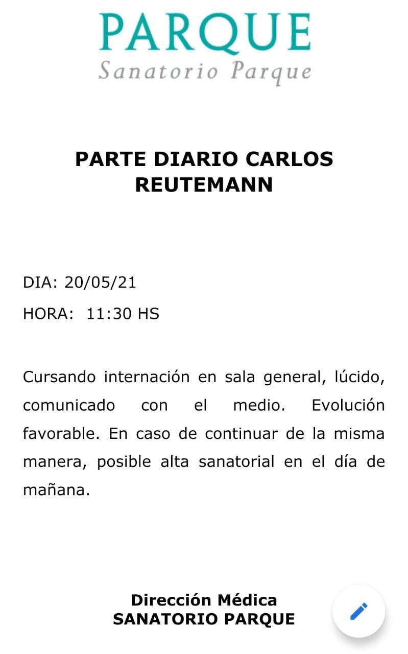 La evolución en el estado de salud de Carlos Reutemann continúa. Tal es así que en las próximas horas el ex piloto de Fórmula 1 y actual senador por la provincia de Santa Fe recibiría el alta médica.