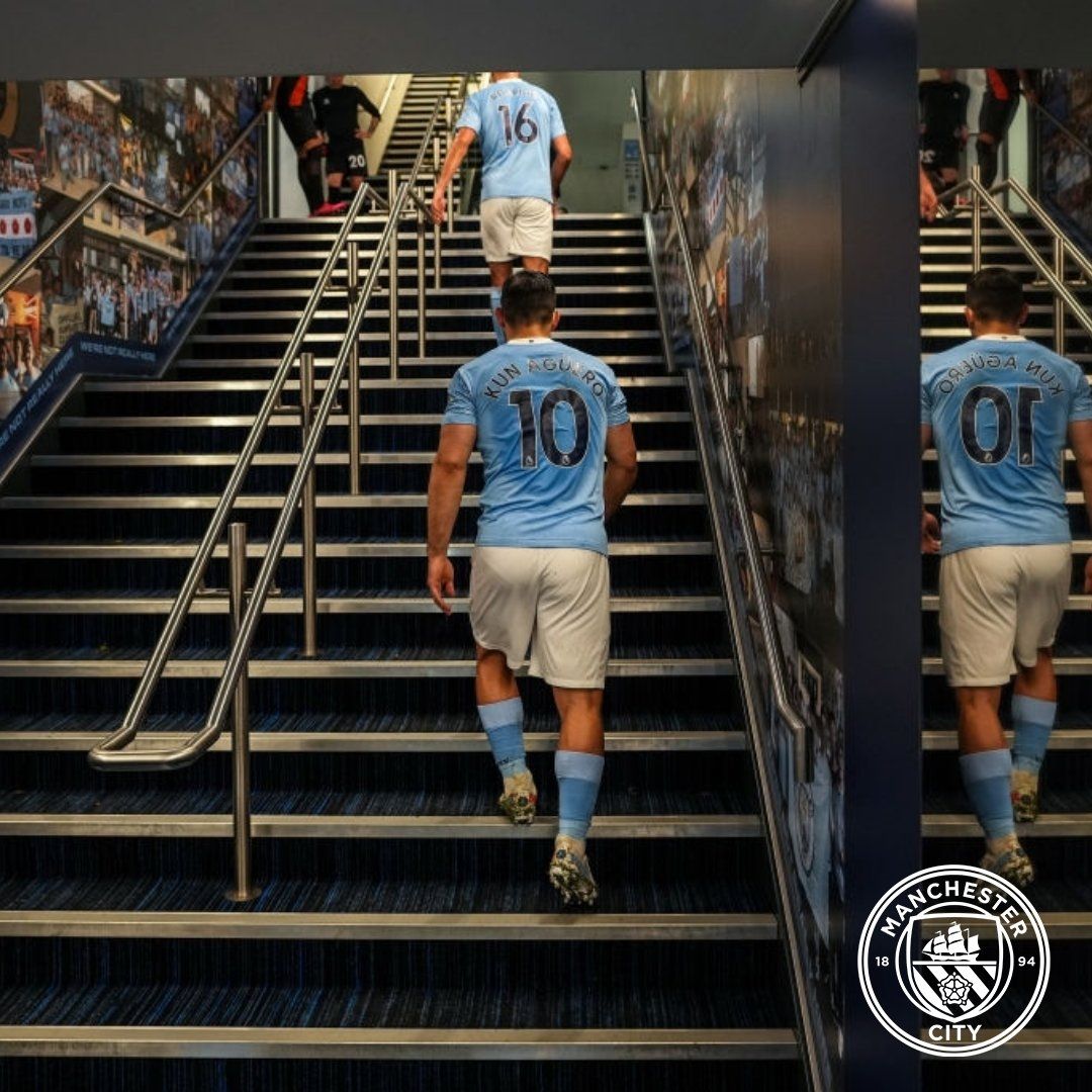 Capturada en el momento justo, se lo ve al Kun de espaldas, luciendo su número diez en la espalda, subiendo por las escaleras y retirándose de la cancha.