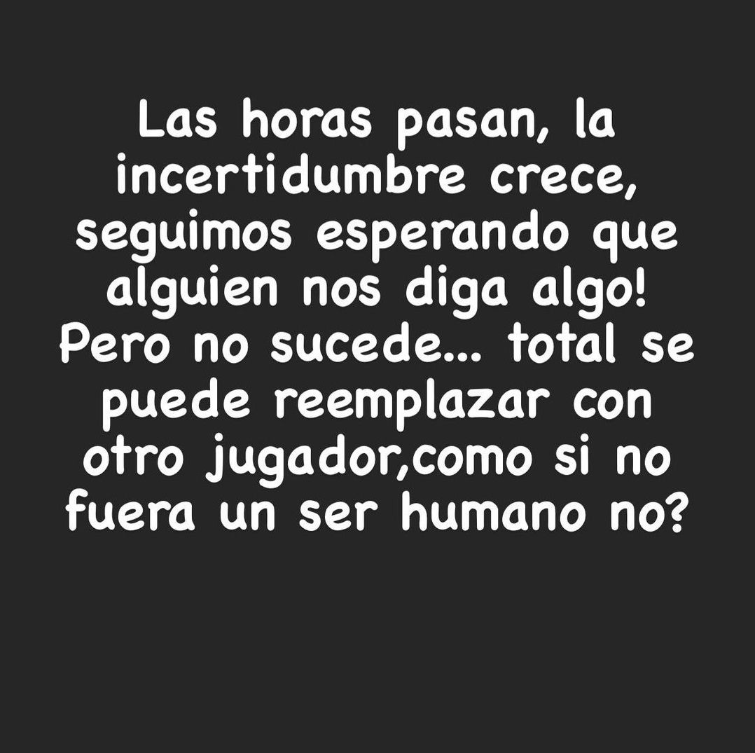 "Las horas pasan, la incertidumbre crece, seguimos esperando que alguien nos diga algo. Pero no sucede... total se puede reemplazar con otro jugador, como si no fuera un ser humano, no?", publicó Nerina Galasso en su cuenta de Instagram y agregó: "Tengo los ovarios inflados de esperar".