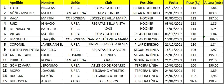 Mientras que la gran alegría para el rugby mendocino es la convocatoria de Aitor Bildosola, tercera línea de Los Tordos RC, a participar de esta competencia internacional.