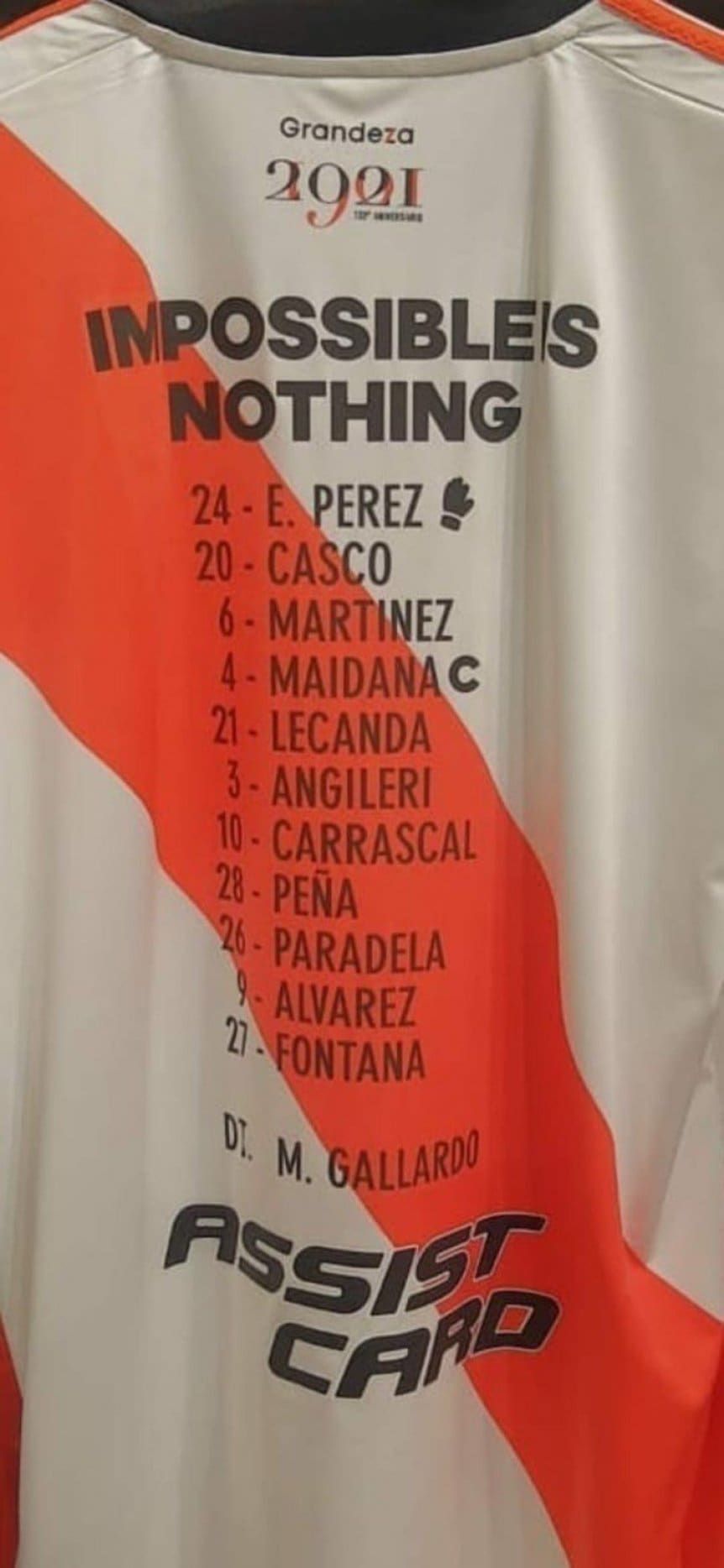 Pero también sacarán la versión de jugador de campo titular, la habitual con la banda roja, pero con la formación de aquel día estampada en el dorso: Enzo Pérez; Milton Casco, Tomás Lecanda, Jonatan Maidana, David Martínez, Fabrizio Angileri; Jorge Carrascal, Felipe Peña Biafore, José Paradela; Julián Álvarez y Agustín Fontana; DT: Marcelo Gallardo.