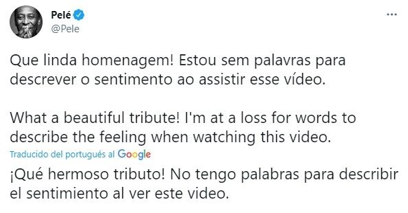 Un show de luces, fuegos artificiales y efectos especiales, junto con imágenes de la carrera del "Pelusa" con las distintas camisetas que vistió en su carrera, iluminaron el estadio Nilson Santos. "¡Qué bonito homenaje! No tengo palabras para describir la sensación al ver este video", dijo Pelé en su cuenta en Twitter.