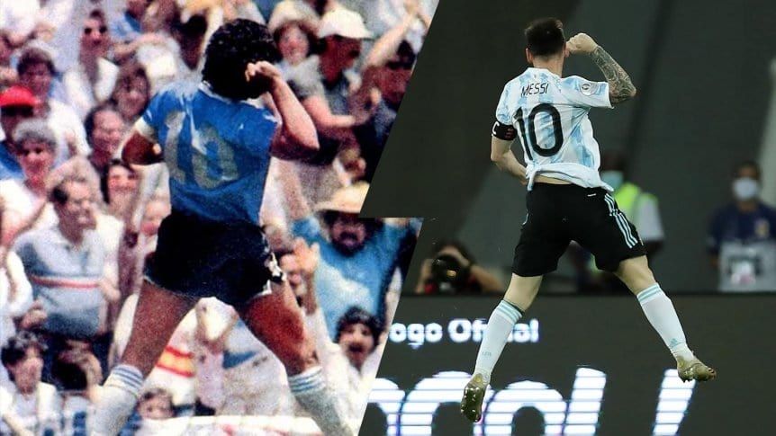 Es que el Diego festejó de la misma manera su golazo frente a Inglaterra en el Mundial de México '86.