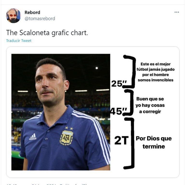 Argentina logró anoche la clasificación a los cuartos de final de la Copa América al vencer por 1 a 0 a Paraguay, estirando así su invicto a 16 partidos, algo que no pasaba desde hace 19 años, sin embargo las redes sociales no perdonaron a Lionel Scaloni y se llenaron de memes.
