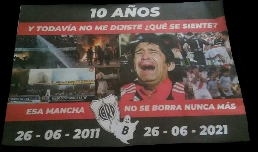 Este sábado se cumplirán 10 años de esa recordada tarde y los hinchas del club de la Ribera tienen preparado una serie de afiches para "celebrar" ese hito. "10 años y todavía no me dijiste que se siente", "esa mancha no se borra nunca más" y "a 10 años de tu 'B'elorio" dicen los carteles que aparecerán este sábado tanto en Buenos Aires como en el resto de Argentina.