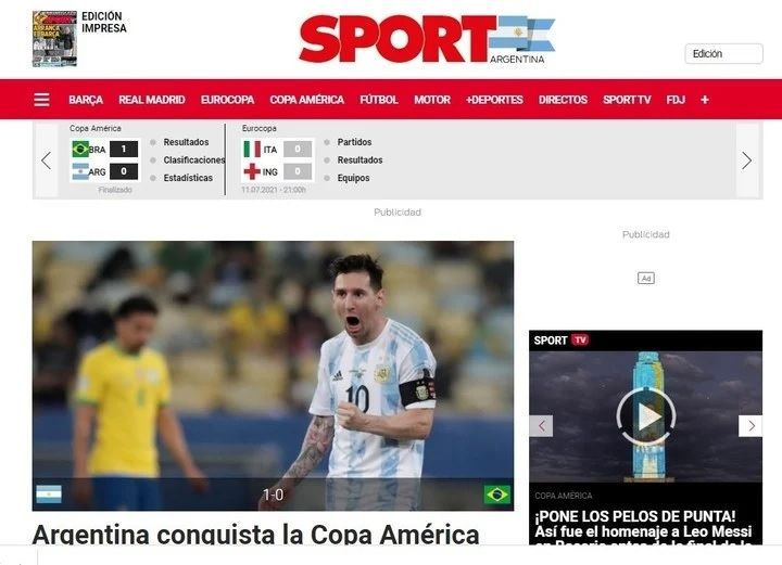 El diario Sport utilizó la siguiente frase: "Argentina conquista la Copa América".