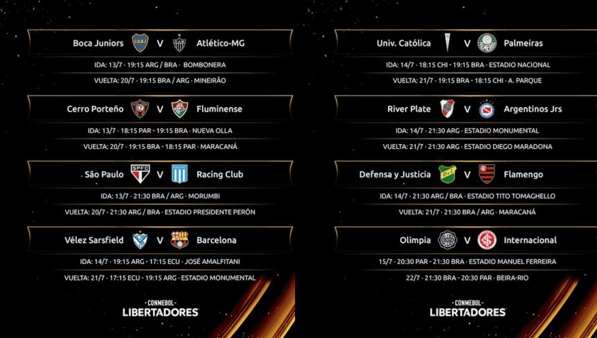 Terminó la Copa América y el fútbol continental a nivel clubes pone primera. Esta semana comenzarán a disputarse los cruces por octavos de final de la Copa Libertadores con seis clubes argentinos en competencia: Boca, River, Racing, Vélez, Argentinos y Defensa y Justicia.