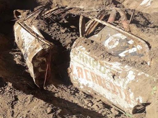 En la localidad pampeana de Toay un grupo de obreros se llevó la sorpresa cuando hacían una excavación y encontraron un auto de carrera enterrado.