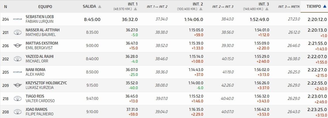 La última parte de la etapa volvió a provocar cambios y finalizó con la victoria parcial de Sebastien Loeb con un segundo de diferencia sobre Al-Attiyah, que le recuperó más de un minuto al francés en poco más de 30 kilómetros.