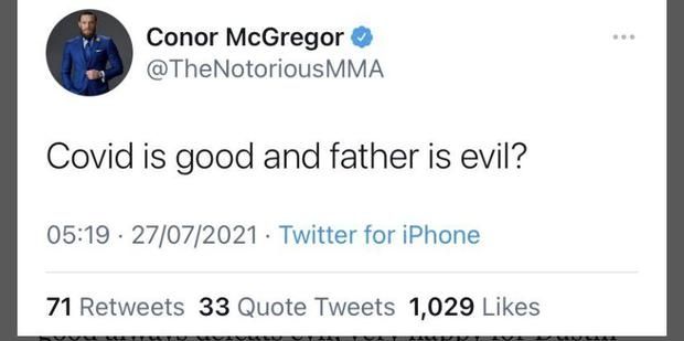 Frente a una ola de repudio enorme por un comentario maligno y fuera de lugar, McGregor decidió borrar el tuit, pero las capturas permanecen.