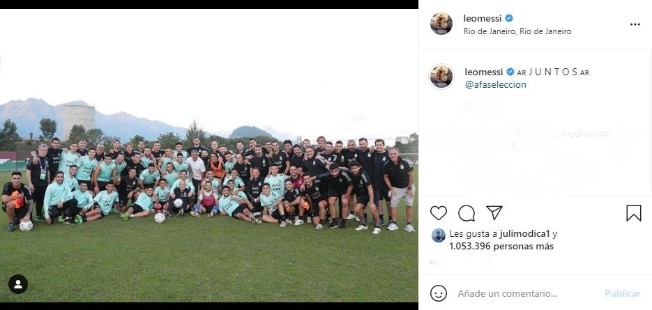 No necesitó mucho texto para enloquecer a los futboleros que desean verlo levantar la Copa. Con una imagen de todo el plantel y la palabra "Juntos", el rosarino encendió la ilusión de un país que acarrea 28 años sin alegrías. En minutos, la publicación superó el millón de likes y fue respondido por miles de fanáticos, como también ex compañeros de la Pulga.