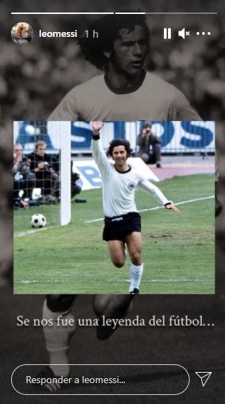 A través de su cuenta oficial de Instagram, el mejor jugador del planeta publicó una foto del Bombardero de la Nación alemana con el mensaje "se nos fue una leyenda del fútbol".