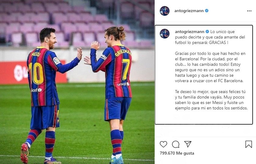 El delantero se sumó así a los mensajes compartidos por la mayoría de un plantel golpeado por saber que ya no tendrá ese plus que siempre le entregó el mejor jugador del mundo.