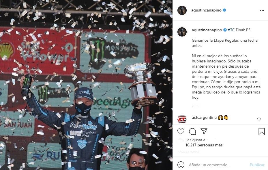 Agustín Canapino ya logró algo que todos sus rivales intentaron desde la primera fecha: se clasificó a la Copa de Oro y ganó la Etapa Regular con una fecha de anticipación. Lo conseguido, algo inédito en su carrera deportiva, lo coloca como el principal candidato a lograr una nueva corona de Turismo Carretera.