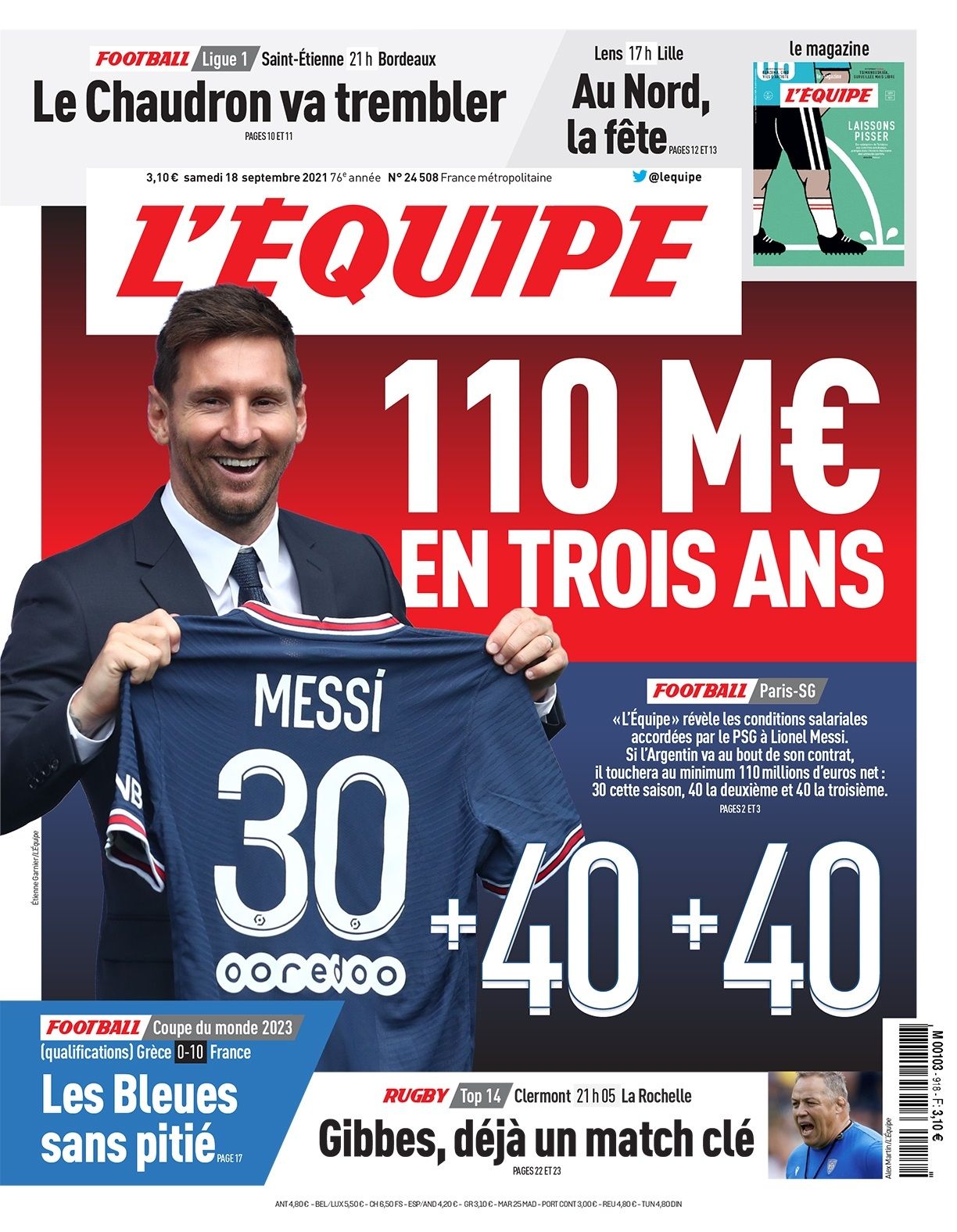 Lionel Messi volvió a ser noticia en las últimas horas por una fake news que recorrió el mundo. El reconocido diario L’Equipe de Francia filtró detalles del contrato del astro argentino con el Paris Saint Germain y se encendió una fuerte polémica. El rotativo, en su portada principal, publicó que ganará 110 millones de euros de salario a lo largo de tres años.