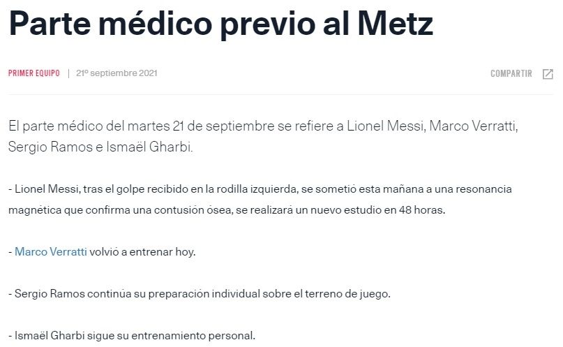 Mauricio Pochettino explicó hoy que el cambio de Lionel Messi se debió a la lesión en la rodilla izquierda y que su "prioridad" es la salud de los jugadores. En la conferencia de prensa previa al partido de mañana ante Metz, como visitante, Pochettino fue abordado por la salida de Messi en el encuentro del pasado domingo ante Olympique de Lyon.