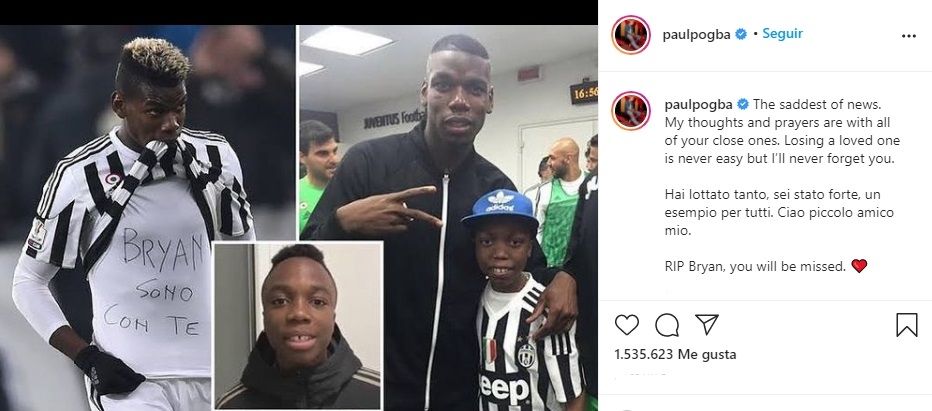 Pogba, centrocampista del United, también lamentó el fallecimiento de la joven promesa con un mensaje en el que ha calificado la noticia como "la más triste". "Mis pensamientos y oraciones están con todos sus seres queridos. Perder a un ser querido nunca es fácil, pero nunca te olvidaré. Has luchado mucho, un ejemplo para todos. Adiós, pequeño mío. RIP Bryan, te extrañaremos", escribió.