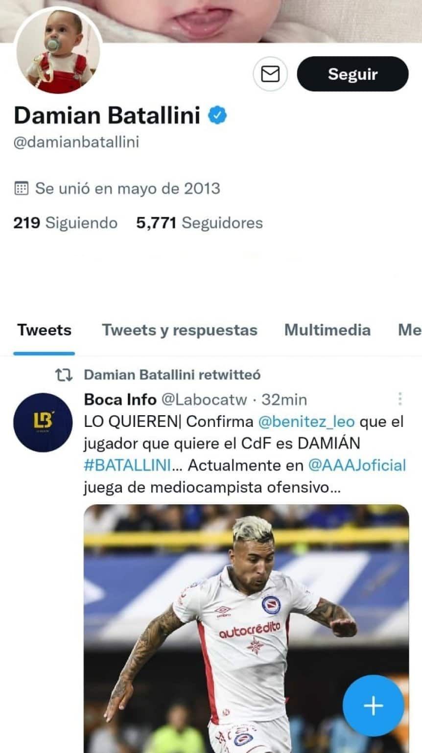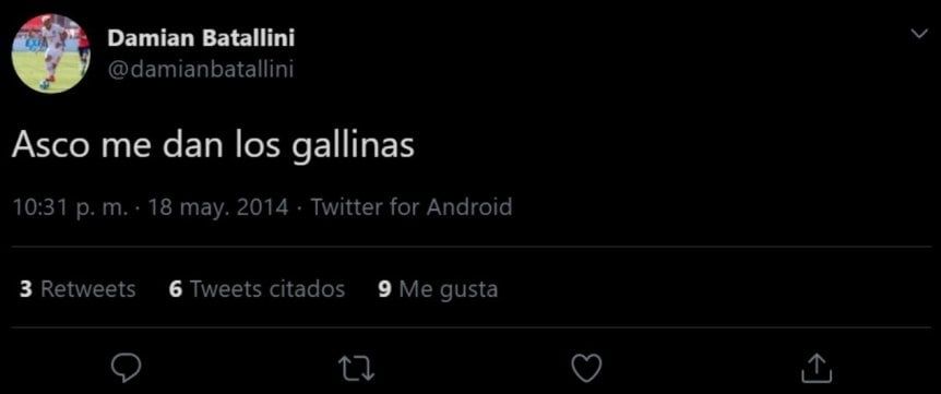 Y añadió: "La mayoría de mi familia es de Boca y obviamente cuando nacés te hacen del club que son ellos hinchas". A continuación las publicaciones de Damián Batallini: