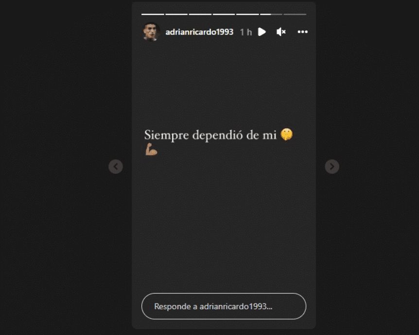 "Siempre dependió de mí", fue el mensaje de Centu, junto a un emoji de "silencio" y un brazo haciendo fuerza, a través de su cuenta de Instagram.
