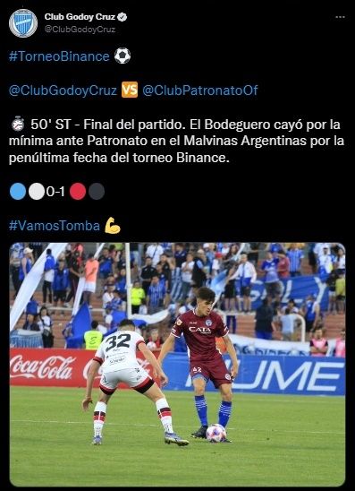 Godoy Cruz pide a gritos que la segunda parte de la Liga Profesional se termine. Este domingo volvió a jugar mal y se despidió de su público con una derrota. Fue 0-1 ante Patronato, que descendió días atrás, pero dejó nuevamente una pobre imagen y estiro a nueve la racha de partidos sin poder sumar de a tres.
