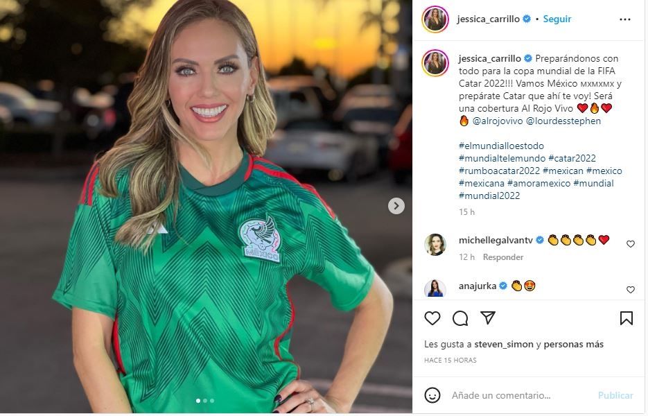 "Preparándonos con todo para la copa mundial de la FIFA Catar 2022!!! Vamos México y prepárate Catar que ahí te voy! Será una cobertura Al Rojo Vivo", fue el mensaje que publicó la presentadora, que confirmó que estará en Qatar relatando el día a día de la Selección de méxico.