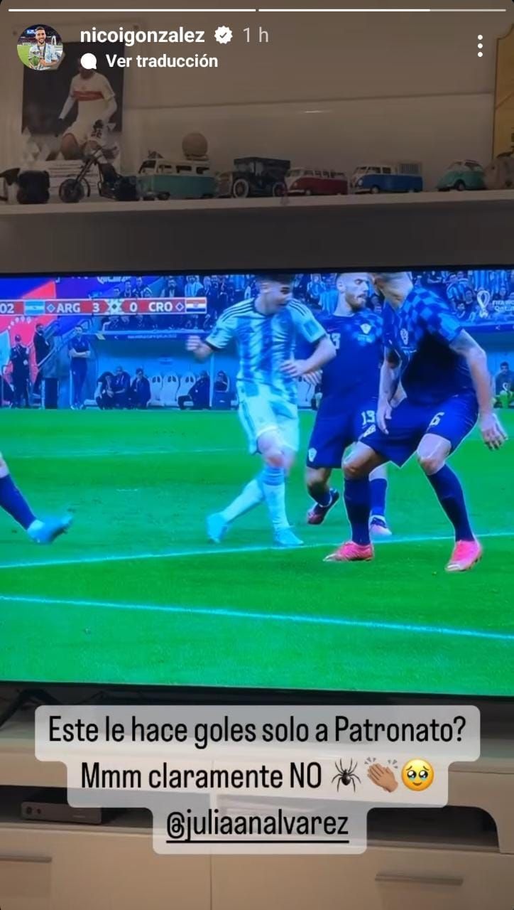 En un posteo cargado de ácido e ironía, Nico González escribió en Instagram: "¿Este le hace goles sólo a Patronato? Mmm... Claramente no, @juliaanalvarez".
