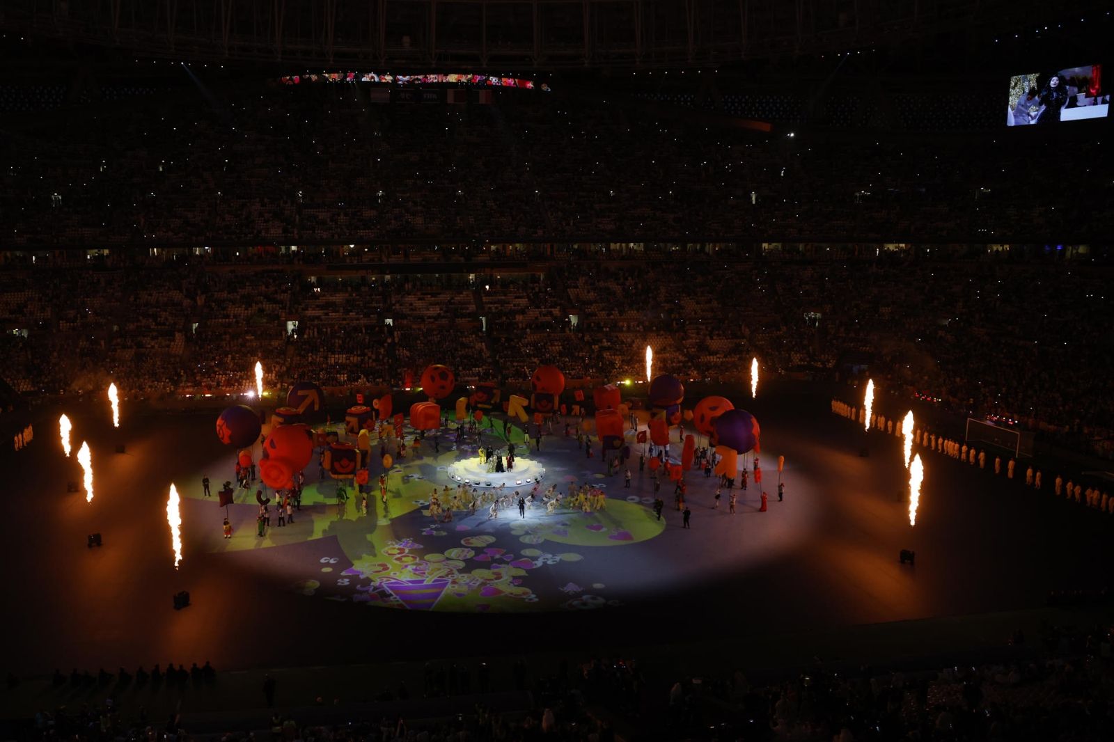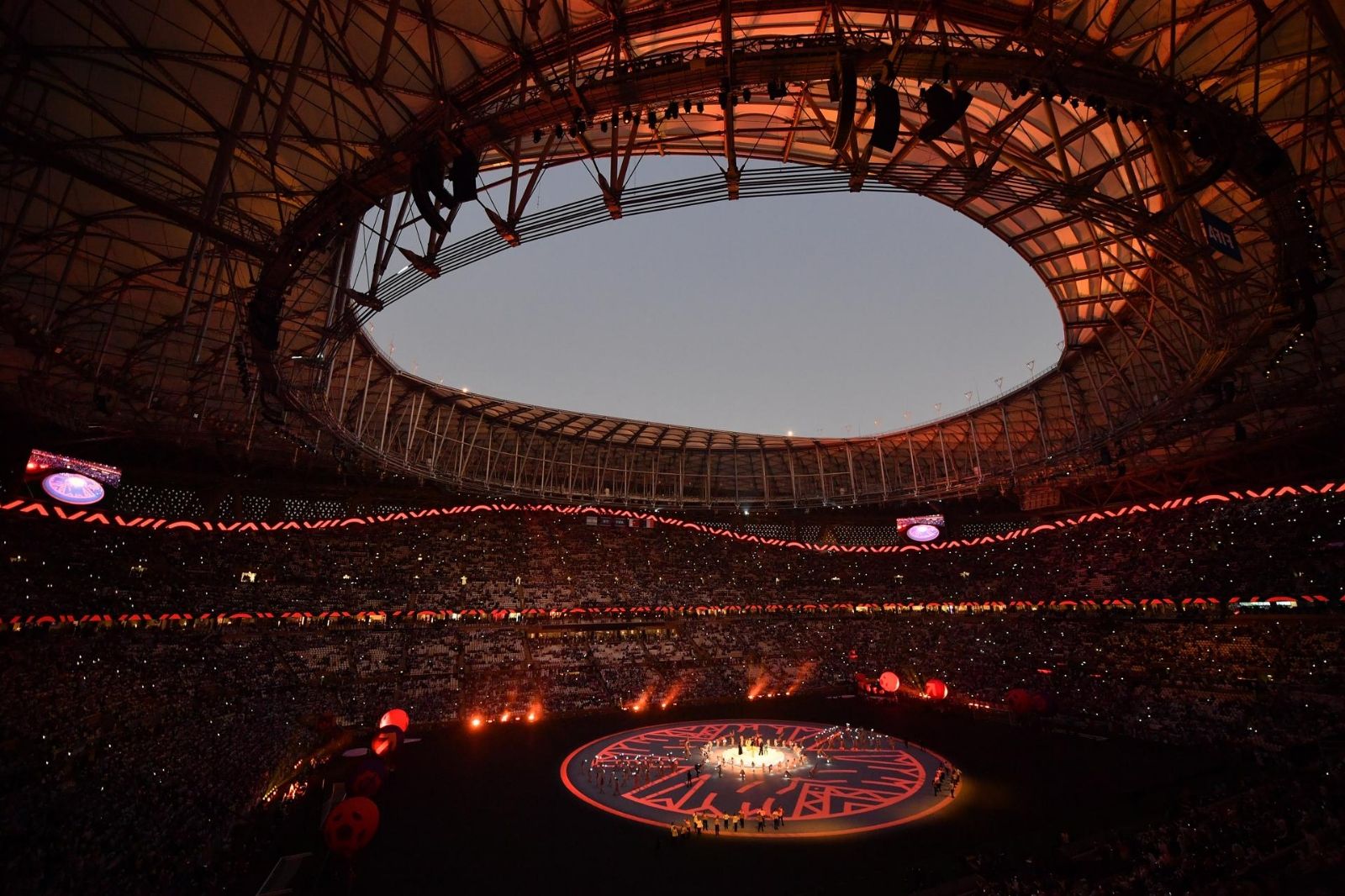 El espectáculo, que comenzó poco más de una hora antes de la final ante algo más de la mitad del aforo del coliseo catarí fue sencillo y la música, como forma en la que el mundo se ha unido en estos 29 días de torneo, fue la protagonista.