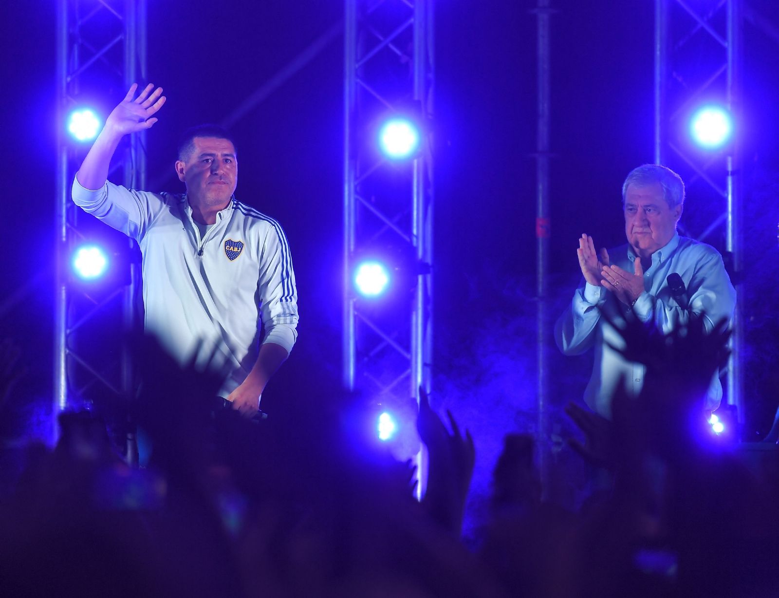 Juan Román Riquelme estuvo acompañado del presidente Jorge Ameal y los componentes del Consejo de Fútbol, Raúl Cascini y Marcelo Delgado, en un acto celebrado esta noche en el playón de estacionamiento de la Bombonera que contó con 10.000 asistentes que despidieron el año en un acto en el que se presumía que el actual vicepresidente segundo de Boca iba a presentar a su propia agrupación, denominada "Soy bostero".