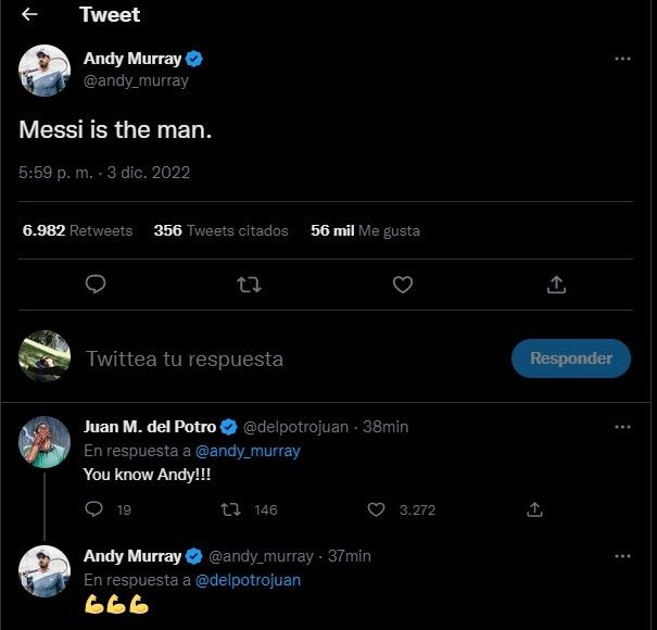 "Messi is the man", comentó en sus redes sociales el tenista británico Andy Murray minutos después de que la Selección argentina ganara su partido contra Australia por 2-1 y se asegurara un lugar en los cuartos de final del Mundial Qatar 2022.