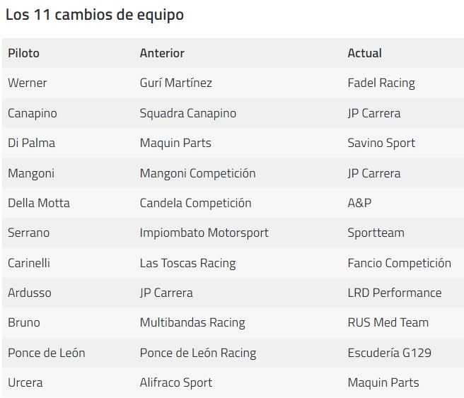 Turismo Carretera: Canapino y Werner, entre los 11 pilotos que cambian de equipo