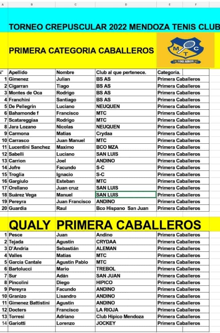 La próxima semana se pondrá en marcha uno de los mejores torneos de nuestra provincia, el tradicional Torneo Crepuscular del Mendoza Tenis Club, competencia por la que han pasado a lo largo de su historia importantísimas figuras del tenis nacional.