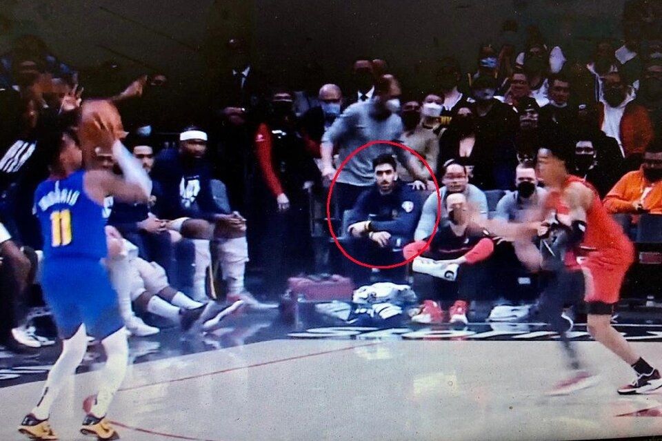 Después de cuatro partidos con presencia simbólica y tres de ellos sin siquiera pisar la cancha, el argentino se aprestaba a vivir otra noche desde afuera. Por eso ni siquiera quedó ubicado dentro del banco de suplentes, ya que se acomodó en asientos preferenciales de aficionados de los Blazers. Como cuando comenzó el partido estaban libres, el argentino y dos asistentes se sentaron ahí, hasta que tuvieron que cederlos cuando aparecieron sus dueños.