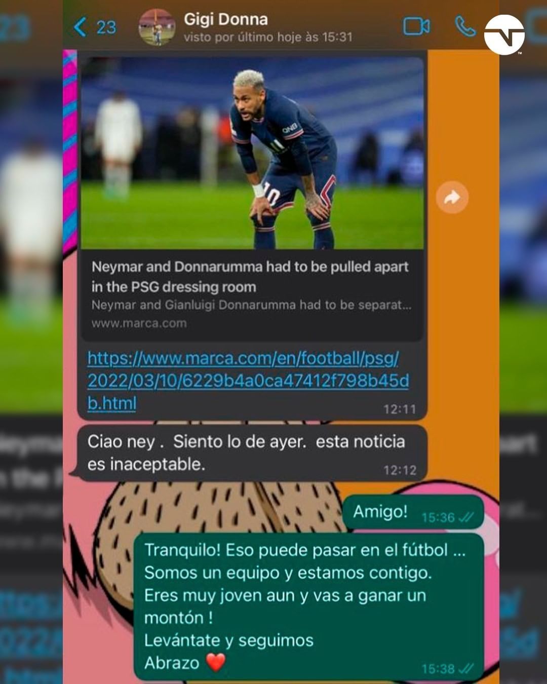 Neymar viralizó su chat con Donnarumma en medio de rumores de pelea en el vestuario de PSG