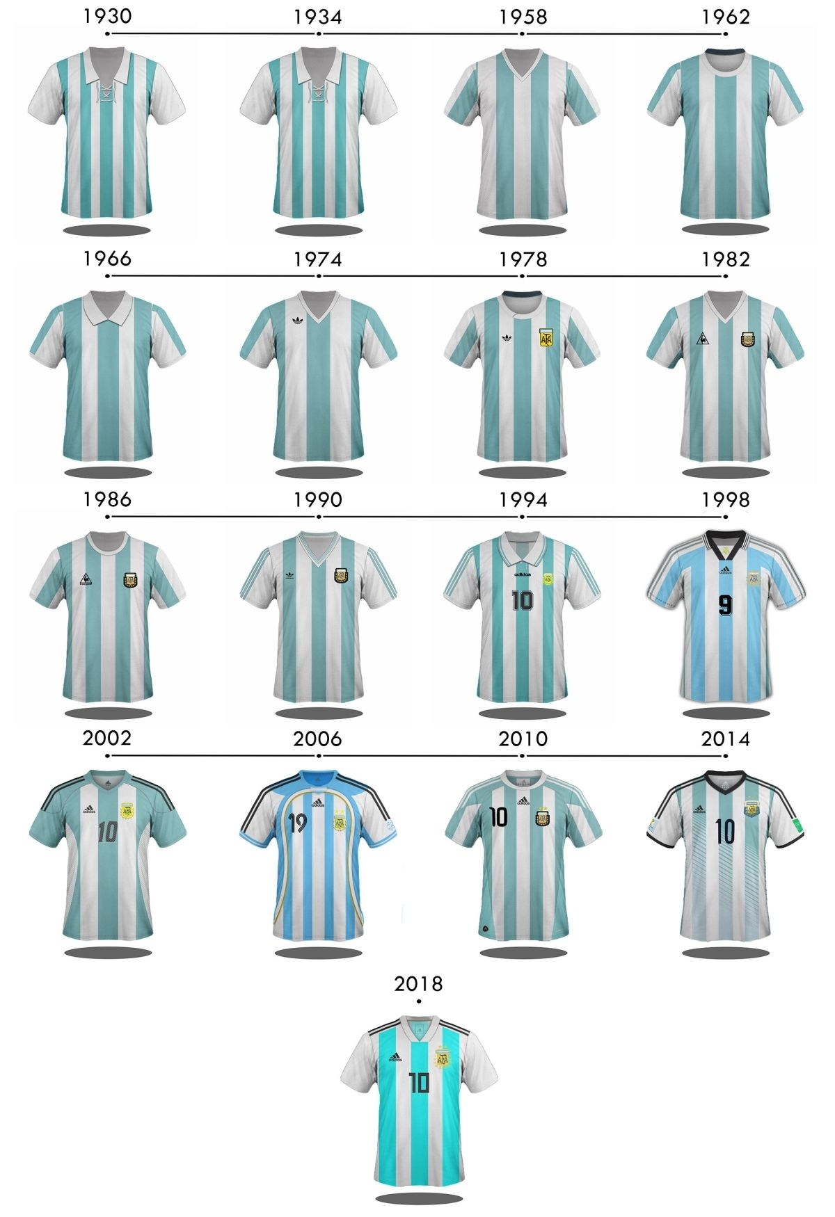 En cada uno de los mundiales que disputó, la Selección mantuvo las franjas gruesas y los tonos en celeste, como algunas terminaciones de las franjas, fueron apenas modificadas. En los próximos meses, entonces, se sabrá si la reconocida web acertó con la información o quedará simplemente como una imagen viral.