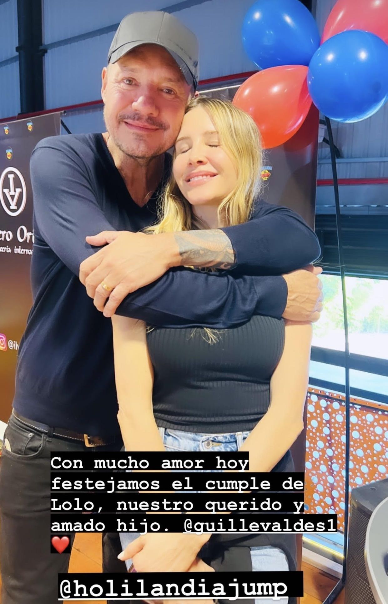 Con motivo del cumpleaños de su hijo menor, Tinelli decoró el lugar donde realizó la fiesta con globos azules y rojos, algo que mostró en sus redes sociales. "Con mucho amor hoy festejamos el cumple de Lolo, nuestro querido y amado hijo", escribió en la imagen donde se muestra con su mujer a quien también etiqueta.